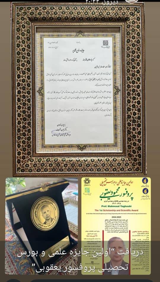 جایزه ایشان در مراسم هفته پژوهش توسط بنیاد نخبگان تهران، به اهتمام مجمع خیران نخبهپرور فارس و همکاری بنیاد نخبگان تهران اهدا شد. همچنین، با نظر کارگروه آقای علی محمودی دانش آموخته دانشگاه سمنان شایسته تقدیر شدند و لوح ایشان با همکاری بنیاد نخبگان سمنان تقدیم شد.مجمع خیران نخبهپرور فارس این موفقیت را به ایشان تبریک گفته و برایشان آرزوی سلامتی، موفقیت و بهروزی دارد. امید است این عزیزان با بهرهگیری از ظرفیتهای عظیم علمی خود، در مسیر همکاری با مجمع و خدمت به نسل جوان و نوجوان کشور گامهای مؤثری بردارند.