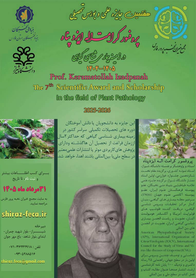 در این راستا مجمع خیران نخبه پرور فارس اقدام به اعطای جایزه علمی و همچنین بورس تحصیلی پروفسور کرامتاله ایزپناه در زمینه بیماری شناسی گیاهی نموده است و طی این فراخوان از واجدین شرایط برای ثبت نام در این جایزه علمی دعوت بهعمل میآورد. این جایزه به دانشجویان برگزیده دکتری و کارشناسی ارشد از دانشگاههای سراسر کشور که در زمینه بیماری شناسی گیاهی دارای پژوهش های کاربردی موثر یا انتشارات علمی معتبر در سطح ملی یا بین المللی باشند، اهدا خواهد شد.